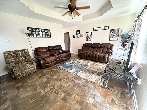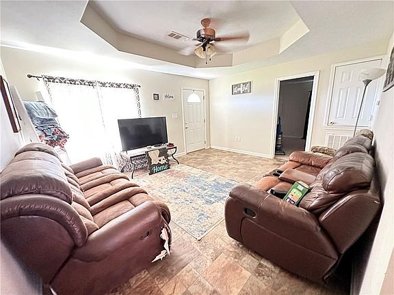 This remarkable 3 bedroom 2 bath home situated on 1 acre of land is perfect for first time home buyers. The home features spacious bedrooms and walk in closets. Both the primary bedroom and the living room have tray ceilings. There are double vanities in the primary bathroom. Enjoy the nice weather from your covered front porch while you watch your kids or fur babies play in the open yard.