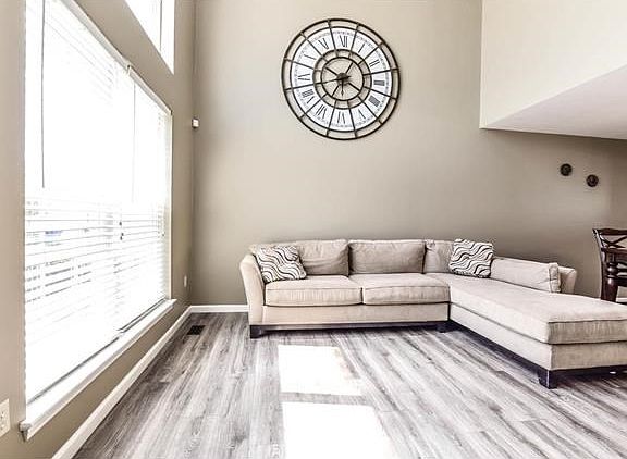 Welcome home to this spacious updated 2 story villa w/approx 1671 sq ft of living space located on a cul-de-sac in the highly desirable Villages of Bainbridge. Step into the two story entry foyer and be greeted w/cathedral ceilings, upgraded laminate flooring throughout main level, and a beautiful wall of windows. Living room/dining room combo. Open kitchen w/center island, breakfast bar, stainless appliances, pantry, living room w/wall of windows and slider leading out to 10 x 10 deck. Upstairs includes master suite w/walk-in closet. Master bath has separate tub and shower, large vanity and linen closet. Nice sized second bedroom and loft area which can be easily be converted to a third bedroom or office area. Freshly painted throughout in neutrals. Basement is a look-out w/rough-in waiting to be finished. Located in the Prairie View Elementary/Frontier Middle/Liberty High school boundaries. Subdivision amenities include pool, walking trail and 3 stocked Lakes with fountains.