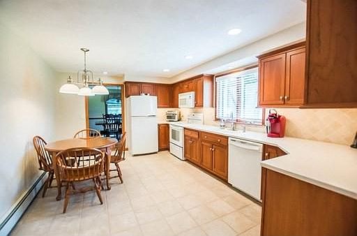 Welcome home to this Established Colonial conveniently located in Seekonk's South End Neighborhood. This Classic Colonial features spacious den with wood burning fireplace, formal living room, formal dining room. Large eat in kitchen has plenty of counterspace to cook! Cherry finished cabinets with Corian Countertops. The 3 Season Porch with vaulted ceiling and large replacement vinyl sliders allows plenty of light and a great view of the tree lined private back yard. The porch is spacious enough to accommodate an indoor/outdoor living room arrangement as well as a table making a great space to enjoy those summer BBQs. 2 Car Attached garage and a large paved driveway.