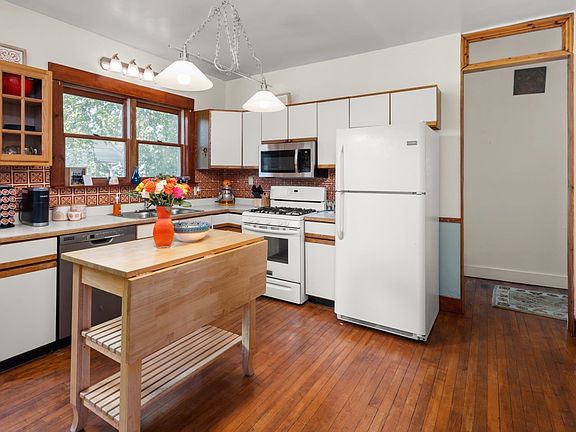 Move right into this charming and well-maintained craftsman bungalow from 1920 with beautiful wood floors and trim in close proximity to restaurants, shopping and more in downtown St. Albans! The three-bedroom, one-bathroom home boasts open dining and living room areas when you enter the home, a spacious kitchen with plenty of storage and counter space, and two bedrooms on the first floor. The laundry is conveniently located on the main floor. Utilize a nook on the main level as a home office space, oversized walk-in closet, or reading retreat! Soak in the restored claw-foot tub that is original to the home in the light-filled bathroom. Upstairs find an expansive bedroom area with built-ins, a desk nook by the window, and plenty of room for a sitting area, fitness area or home office. The large, dry basement with new drainage, vapor barriers, and poured concrete has ample storage space or the potential to be finished for more living area. Enjoy sunset views from the large front covered porch on the quiet residential street. Plant a veggie garden in the backyard, or container garden on the side deck space. Play ball in the backyard without too much lawn to mow and maintain. Close proximity to Houghton Park - with basketball courts, playground, and large grassy area right around the corner. This home makes for easy living close to many amenities and the interstate. The many recent updates and improvements to the home, including electrical and roofing, make for easy living!