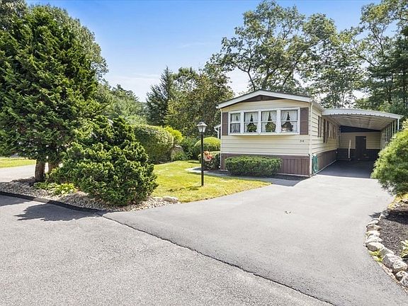 Fantastic opportunity to own in sought after South Meadow Village, Carver. Nestled in 336 acres of beautiful grounds & scenic vista views. There are 59 clusters (cul-de-sacs) all beautifully landscaped w/ a total of 522 homes. This spacious 70x14 home w/ bump out sitting room & bright sunroom has been lovingly taken care of. New owner(s) can live happily just the way it is or, remodel w/ updates can be done with ease. There is an oversized carport, attached workshop, sizable shed for your gardening tools, lots of wonderful privacy w/ lush mature landscape surrounding the home. Spacious 3 bedrooms, 2 full baths offer ample room plus an open floor plan for entertaining or relaxing in the sunroom with a good book. You can be a part of this wonderful community enjoying all the amenities to include: saltwater pool, clubhouse, function hall, library, & exercise room. Activities include: organized trips, dances & live bands, exercise classes, poker & more. Come see this very special home.