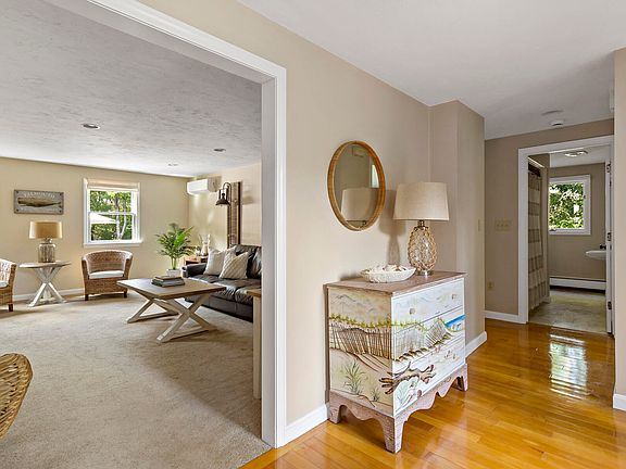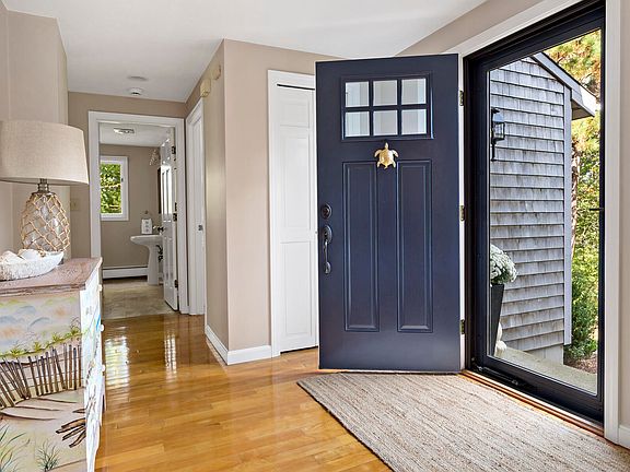 Contemporary Oasis with Pool Abutting Pocasset Town Forest - Just 1.5 Miles to Monument Beach. This sun-filled contemporary home offers both style and comfort in a private, serene setting. The spacious living room features a beautiful stone gas fireplace and opens into a bright kitchen with Corian countertops, stainless steel appliances, and gleaming hardwood floors. The main level includes two generously sized bedrooms, a full bath, and convenient first-floor laundry. Upstairs, you'll find two large bedrooms, an open loft ideal for a home office, an additional bonus room, and a private balcony off the primary bedroom overlooking the tranquil backyard. Step outside to your own retreat with a sparkling pool multi-level patio, fenced yard, and outdoor shower--perfect for summer living. The home has several mini-split systems for efficient air conditioning and supplemental comfort. Additional features include a two-car garage, full basement, and direct access to miles of walking trails in Pocasset Town Forest. All this just a short drive to Monument Beach, the marina, and Cape Cod Canal.