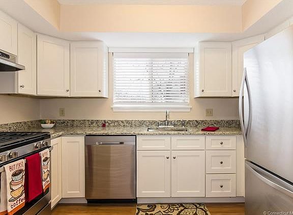 Completely remodeled, gorgeous end unit townhouse condo - move-in ready! Brand new kitchen with stainless steel appliances, including a gas convection range, granite countertops, and beautiful white cabinetry. All new durable Pergo flooring and neutral carpeting in bedrooms. New windows throughout make this unit bright and sunny. Remodeled full bath on bedroom level and powder room on main level. Freshly painted throughout. Lower level flex space is perfect for office, workout room, or storage-- whatever you need! One car attached garage plus additional parking. Low condo fees! Rare opportunity to own in this quiet complex, conveniently located minutes to commuter routes, shopping, restaurants, downtown New Haven, and Yale. *Subject to Probate Court approval*