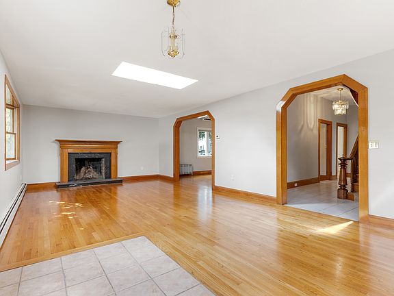 Discover the perfect blend of comfort and convenience in this freshly painted, expansive single-family home. Boasting ~1500 sqft of living space on the first floor, this residence offers ample room for you to spread out. The inviting living room features a classic marble and wood fireplace, a charming bay window, a skylight, and gleaming hardwood floors, creating a warm and welcoming feel. Host memorable dinner parties in the generously sized dining room, which comfortably seats 8 guests. Adjacent to the dining area, a versatile den awaits, ideal for a home office. The bright kitchen overlooks a beautifully manicured backyard, complete with mature trees, a patio, a grape arbor, and trellis. Upstairs, you'll find 4 bedrooms, all with high ceilings that enhance the open, airy feel of the home. The lower level offers extra storage space. Less than 1/2 mile from the MBTA Commuter Rail, Mass Pike, and shops and restaurants, this home combines suburban tranquility with urban convenience.