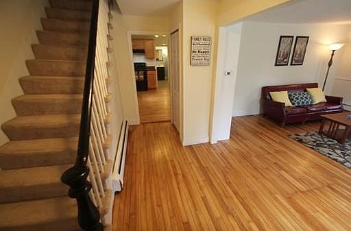 Village colonial combining yesterday's charm and craftsmanship with modern updates, which include good sized kitchen with maple cabinets, breakfast bar and energy efficient appliances which stay. All newer replacement windows, new plumbing, new electrical and new furnace. Hardwoods throughout the first floor. 3 generous bedrooms, 2 full updated baths. Charming Built-ins. First floor laundry room. Full basement. Easily accessible attic providing extra room for storage. Rear porch overlooking nicely landscaped lot. Large,recently resurfaced, driveway providing plenty of parking. Close to schools, parks, The Shops at Blackstone Valley, town center, with easy access to major highways. Ideal home for first time buyers, young professional or someone with in home business.
