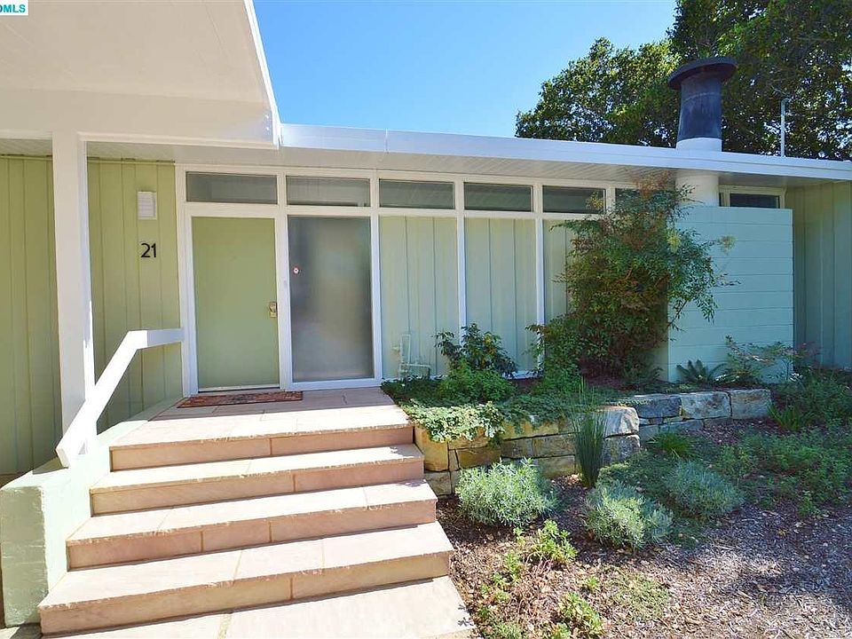 Mid-Century classic in fantastic condition, with walls of glass and a serene private outlook. Drought tolerant garden on a drip system. A detached studio/office with deck viewing the woods. This home shows pride of ownership in a wonderful location. Open 1 PM - 4 PM on April 11 -12th, & 19th.