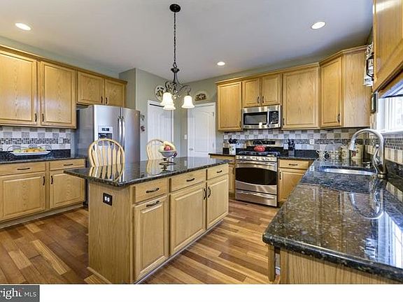 You will be impressed with this Poet's Walk beauty. Immediate curb appeal and then WOW, what an entrance as you step into a dramatic spacious 2-story foyer with hardwood floors, NEW carpet and then into the 2-story Family Room with fireplace. Need to work from home, private office tucked off of family room with plenty of space and hardwood floors. You will love the newer kitchen with beautiful granite counter tops, hardwood floors, tile backsplash, newer appliances including 5 burner gas range and built-in microwave oven which looks out to picturesque rear yard with multi-level patios....great spot for entertaining and relaxing. Laundry room just off of kitchen and an additional pantry. The master suite includes two closets (1 walk-in), master bath with skylights, garden tub, double vanity sinks and stall shower. You will find three additional spacious bedrooms and full bath on the upper level. Need more space for fun and storage...full finished basement with wet bar, possible 5th bedroom or another office, full bath and tons of storage and entertaining space. This home has two zone heater and central air and security systems. Seller is offering a one year home warranty for added peace of mind. Cinnaminson offers an excellent school district, short walk to park, tennis courts, swim club, theatre and plenty of nearby shopping and easy commute to Philly and major roads. Meticulously maintained, this is the one!