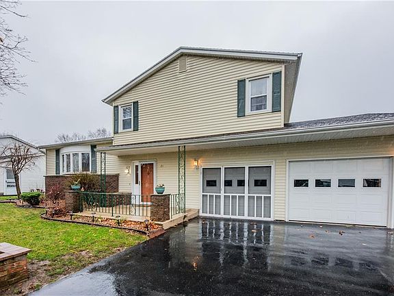 Welcome to 21 Emilia Circle! Lovingly cared for by only the second owner for 44 years! Nothing left to do but move right in. This 3 bedroom 1.5 bath home features stunning hardwoods throughout, a three season porch off the first floor living room, a spacious eat in kitchen, 2 car garage and a second kitchen in the basement for the entertainer's delight! The second living space with gorgeous bay window on the mid-level would make a great dining room, playroom, den, office, family room- whatever fits your needs! Three good sized bedrooms and full bath complete the top floor. Updates include; Tear off roof with architectural shingles (2010), thermal pane windows & vinyl siding, newer air conditioner (2016), newer stove & dishwasher in main kitchen (2017 & 2018) and BRAND NEW (2020) 150 amp electrical service with new plugs and outlets throughout! Spencerport schools! This one is a must see! Showings start Friday 12/4 @ 9 am. Delayed negotiations until Monday 12/7 @ 5 pm