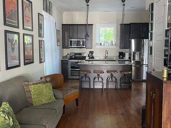 Two story home near Leon's Oyster Shop, The Recovery Room, The Daily, and many other restaurants. A gorgeous grand oak tree shades the front yard. The driveway provides two off-street parking spaces. The first floor is an open concept living and dining space. The full kitchen is well-appointed with stainless steel appliances, gas range, large island, ample cabinets, and granite counter tops. Heart of pine floors throughout. There is also a half bath on the first floor.On the second floor, each of the two bedrooms has two large closets and a private full bathroom. No pets please. Owner is flexible on lease terms. month to month, 3 months, 6 months, whatever term works for you!