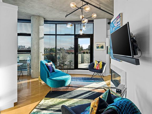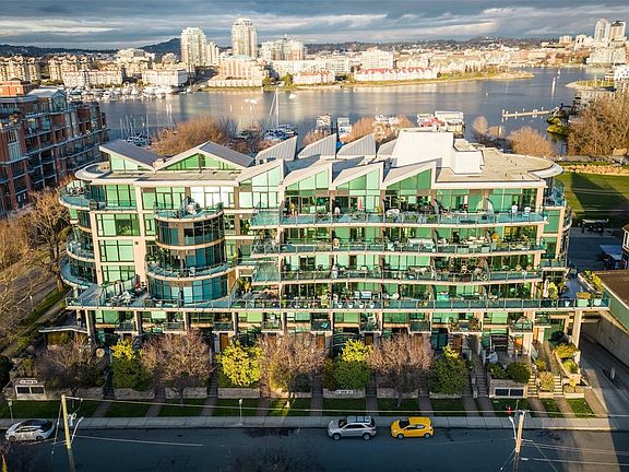 This stunning south-east facing corner suite at the REEF features an expansive deck to enjoy city and ocean views. With 10' ceilings and floor-to-ceiling windows overlooking the expansive patio, this compact one bedroom and den condo was completely renovated to create an elegant yet highly efficient space with loads of built-in cabinetry and closet organizers, new lighting and remote control blinds throughout. The dream kitchen features professional quality appliances, custom cabinetry and quartz countertops opening to living room with a three-sided gas fireplace, and office space with built-in desk and additional storage. Spacious bath has a rain shower and heated floors. Pets and rentals are welcome making this a perfect year-round home or a cosy pied-a-terre in a location that is hard to beat; across the road from Fisherman's Wharf and a short stroll along the Inner Harbour to downtown with its restaurants, shops & galleries.