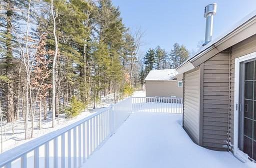This home is truly "The One". Nestled in an ideal country setting, 21 Evergreen Drive is close to highways, shops and restaurants just over the border in Newton, NH. This 2 bedroom, 2.5 bath home is just over two years old and in the 55+ community of Sargent Woods. It offers modern, one story living with everything you need to feel right at home. Not to be missed are the hardwood floors, bright kitchen with plenty of storage, open living room and additional office space. Entertain friends and family outdoors all summer long on your private back deck! Amenities include a stunning clubhouse with fireplace and big screen TV, plenty of RV parking, walking/hiking trails and a community garden! Get ready to fall in love with 21 Evergreen Drive.