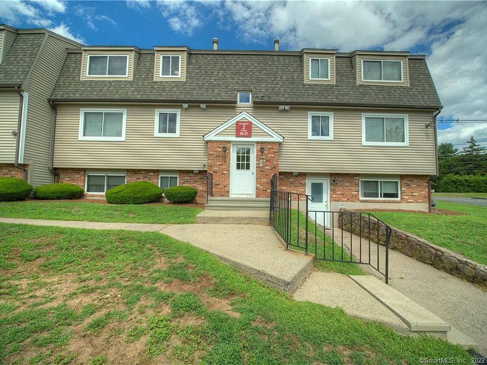 Beautifully updated and ready to move-in condo with 2 bedrooms, 1 full bathroom and 676 sq ft of living space at The Evergreene Condominiums. With all living space on one level, this unit is in excellent condition and looks picture perfect! The kitchen features new stainless steel appliances such as a new dishwasher, new refrigerator, and new gas oven/range. The kitchen also has a new stylish backsplash and new overhead ceiling light. The bathroom has been remodeled and updated with a new vanity, light fixture, flooring, tile wall and tub. There is attractive faux-wood laminate flooring in the living room and tile in the kitchen. The bedrooms and hallway also have new wall to wall carpeting. All rooms have been freshly painted. The living room has recessed lighting. There is a laundry closet in the unit with a Whirlpool washing machine and dryer. The water heater is from 2011. The (gas) furnace is 15 yrs old. There is baseboard heat and an air conditioning wall unit. The unit is connected to public water and sewer. This condominium is conveniently located and is only 1 mile to RT 15; 2 miles to the Wallingford Train Station; close to all shopping options on RT 5; and, most importantly, a 4 minute walk to famous Neil's Donuts on N Turnpike Rd! There is a large paved parking area with ample parking spaces for all residents. Units in similar condition rent for $1350-$1400. (The association is not FHA approved.)