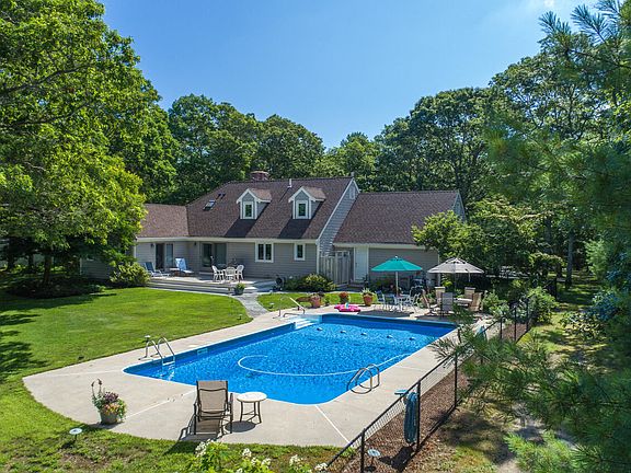 Remarkable southside setting that is convenient to both Osterville and Centerville villages, yet the property has a 1.09 Acre lot that abuts 140 Acres of MA Audubon Society land. This expansive Cape has had many updates; most recently a new heating and AC system, new exterior paint, primary bedroom bath, stove, microwave, washer, and dryer. The first floor has a kitchen with dining area, fireplaced living room with sliders to a deck, formal living room, a den, an office, a hall bath, a half bath, a first floor laundry, and a primary bedroom with private bath, walk-in closet, and sliders to a deck. The second floor has a family room, 2 full baths, plus two more bedrooms, and a bonus room. The grounds are extremely private, and boast a 20 x 40 pool and a separate workshop/third garage. An exceptional combination of privacy and convenience. Passing Title 5 inspection in hand. Taxes may vary due to owner use of property; buyer should confirm.
