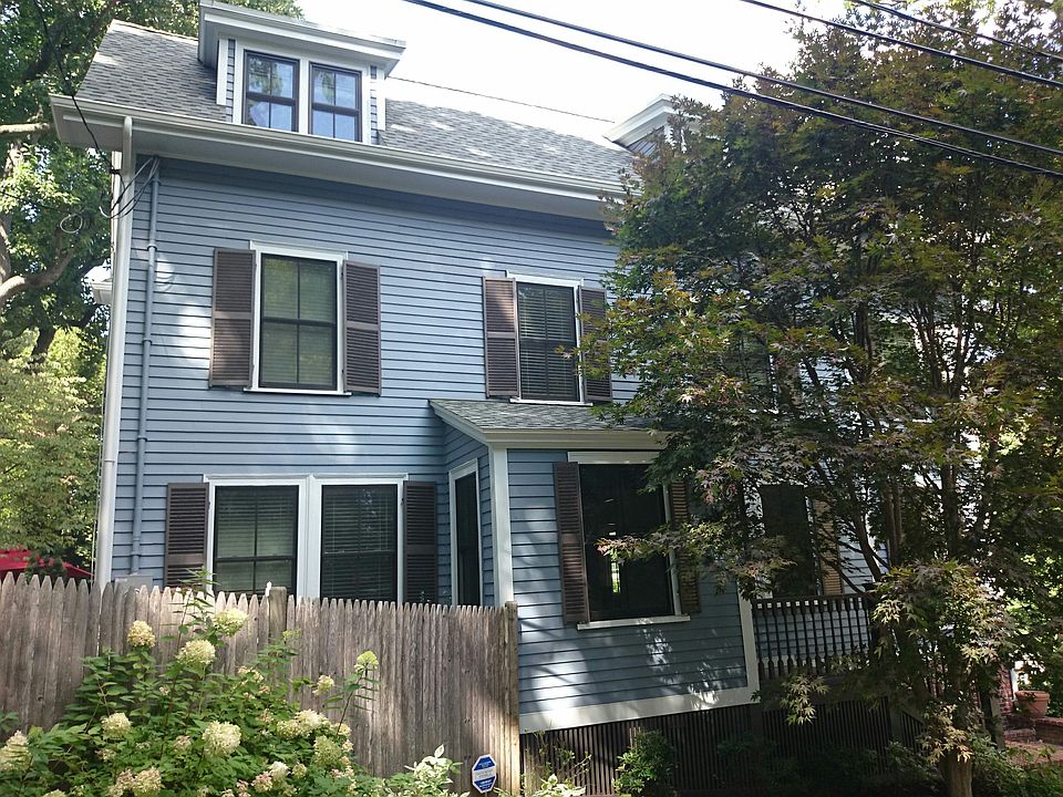 Estate Area. Beautiful 1920 clapboard Colonial. Spacious living room, dining room, and family room, all with fireplaces. Family room opens to lovely walled garden. Large eat-in-kitchen with butler's pantry. 2nd level has huge master suite w/generous bedroom, dressing room and en suite bathroom, as well as two additional large bedrooms and a full bathroom. 3rd level has two good-sized bedrooms, a sitting room and a full bathroom. Basement with laundry and wine cellar. Attached garage.