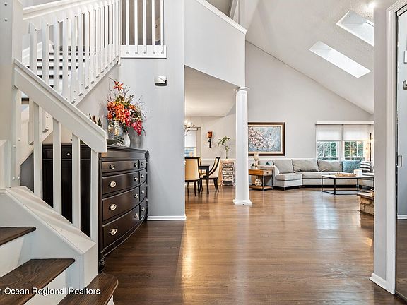Completely remodeled (by designer) open floorplan home (filled with natural light) in prestigious ''The Greens'', located on the Fairway of Forsgate's ''Palmer Course'', gated community w/out age restrictions, pets allowed, private park like setting*Updates include: Roof, 2 sky lights, windows, 3 sliders, designer paint, refinished wood floors, electrical & plumbing fixtures, water purifier, professional landscape, garage doors & openers, deck tiles, alarm, recessed lights, kitchen & bathrooms appointed with quartz counters-porcelain floors-designer tiles-custom cabinetry & plumbing and electrical fixtures-glass backsplash-stainless steel appliances, window treatments, carpet*2 story foyer and Great room w/Stone wall fireplace, amazing master suite w/sliders to deck, formal dining room,
