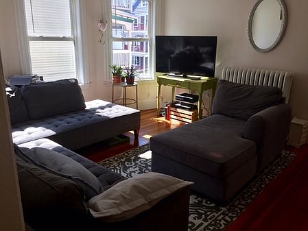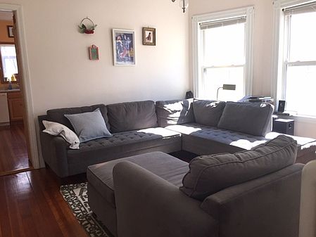 2 Bedroom (BR) apartment only 6 short blocks to Roslindale Village (Also 6 blocks to Arboretum) Rent of only $2200, efficient gas utilities (Tenants' responsibility). One of the bedrooms has a small office/study off it. Plenty of counter & cabinet space in this fully equipped kitchen Dishwasher/Disposal, Gas Stove Gas heat & hot water (responsibility of tenants) Double panned insulated windows. Hardwood floors Laundry in bathroom. 1 Tandem driveway parking space Available for May 1 Sorry NO PETS/NO SMOKING Building. Great Roslindale Village location just a few blocks to the commuter rail, the shops, restaurants, grocery stores, seasonal Farmer's Market Total move in costs are: 1st month rent, security deposit equal to one month rent & one month broker fee, a total of $6600 to move in. This unit is for June 1. Or earlier