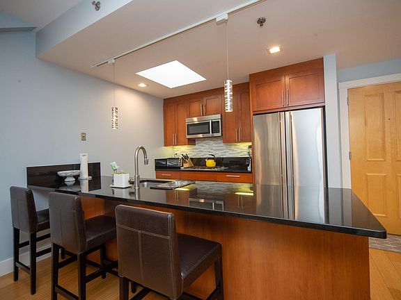 Furnished or unfurnished! Beautifully appointed over-sized penthouse one bedroom with generous living space at the Penmark. Updated open kitchen features granite counters, cherry cabinetry, & stainless appliances. Expansive living space with hardwood floors and skylights offers lots of space for seating, dining and desk. Oversized bedroom with en-suite bath and HUGE closet. Central air. Well-equipped fitness center & shared concierge. Ideally located near the South End's best shops and restaurants, Boston Medical and the SOWA arts district. Easy access to I-93, I-90, and the Silver Line. Full direct-access garage PARKING space INCLUDED! Rent includes heat, hot water, and gas