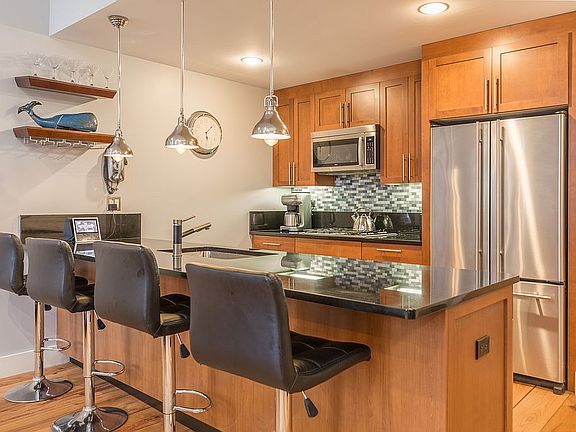 LIVE SHOWINGS AVAILABLE Pemmark, 2 Bed, 2 Bath duplex condo. 1 of 2 homes in the building w/ a private entrance. This front facing home has 12' ceilings, two 9' arched windows, wide plank oak floors sawn from old barn beams, recessed lighting & central air. The kitchen has black granite counters, cherry cabinets, stainless steel Jenn-Air appliances & pendant lights over the breakfast bar. Also, a glass tile backsplash & additional pantry storage. Downstairs the master bedroom suite has recessed lighting & marble bath w walk in shower. The 2nd bed & recently updated guest bathroom are also on the lower level. The washer/dryer is outside of both bedrooms. Additional storage under the stairs. 2 deeded garage spaces are in one tandem lane. The Penmark is a full service building with concierge services for package delivery, 24/7 security, pet wash room, common courtyard, updated gym w Peleton. 1 million spent on common area upgrades. Close to Bar Lyon, Boston Chops, Flour, Stella
