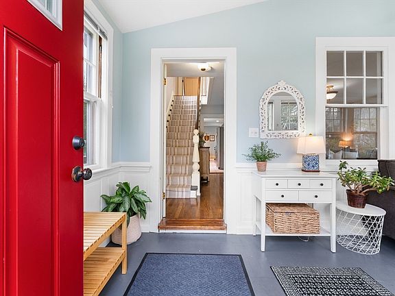 Irresistible, updated Village Colonial combines classic charm with modern living in a quiet neighborhood near major routes, and all Natick offers! Enter onto the bright porch, and step into the foyer featuring an antique Newell post hardwood flooring glass French door with original hardware to the spacious open concept living and dining rooms. The kitchen has vintage style mixed with many updates, including stainless steel appliances, a gas range, subway tile, recessed lights, and walls of cabinets for storage. Upstairs 3 bedrooms, all with hardwood floors, share a remodeled full bath. Recent improvements include new HVAC (adding A/C and switching from oil to natural gas heating), a new water heater, adding a bathroom, and countless renovations. Outside is a lovely patio with a pergola for shade, and a split rail fence surrounds the lush backyard with perennial plantings. The backyard has access to the Rail Trail providing a path to the new Natick Navy Yard Playground. Welcome Home!