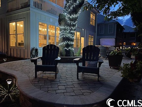 Beautiful trees, view and location! Set on a quiet cul-de-sac with marsh views and private backyard, this home offers everything you will need for an Inlet style life. There is an oversized patio in the back yard with a spa tub and firepit for entertaining. A 4 season room off the patio offers year round entertaining. This lower level also has a 4th bedroom, full bath, and a small office. Access to the 3 car garage is also here. The main level has open concept family and dining, plus kitchen with stainless steel appliances,, including gas range, granite counters, breakfast bar, wood floors, and pantry. The spacious master suite has a walk in closet, attached bath with double sinks, and tiled shower. The laundry room, and half bath are also on this floor. The top floor has 2 large bedrooms, both with their own private baths, and a loft sitting area/playroom. The 3 car garage offers plenty of storage and there is a community boat landing and day dock. This small association with only 14 home sites is located conveniently to the restaurants and shops along the Marshwalk. Don't miss your opportunity for this beautiful home.