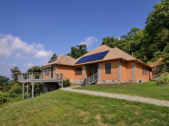 Gated, private and completely secluded, contemporary home on 11.49 acres overlooking amazing year-round views of the Reems Creek Valley and beyond. This one-level home has 4 bedrooms/3 baths in the main house, master on the main, formal dining and granite in the kitchen and baths. Basement level has a 1 bedroom/1 bath in-law suite/apartment with kitchen and separate entrance for extra guests or rental possibilities. Energy-efficient solar panels take in the sun to provide electricity and hot water to the whole house greatly reducing utility bills along with a complete home water filtration system. Enjoy the expansive south-facing deck with family and friends. Wind up the paved driveway to level ground, a spacious home and "in the sky" views that will take your breath away. Welcome home to your retreat and only 10 minutes to downtown Weaverville and 20 minutes to downtown Asheville!