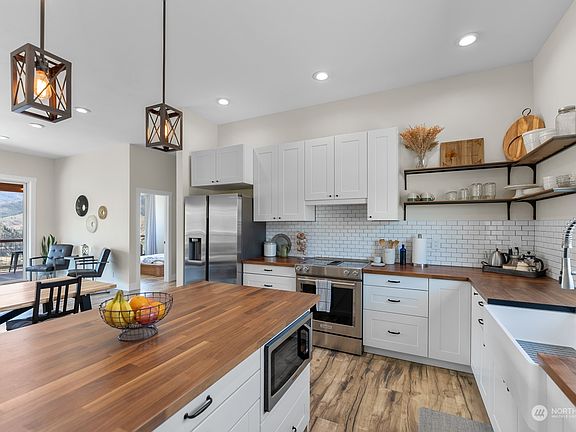 Perfectly sited with stunning Methow River view, elegantly designed & executed home offers expansive interior that surprises & delights. In other words, you have GOT to see this house!!! Territorial panorama will drop your jaw as you enter the open living area. Soak in the atmosphere as you walk through the kitchen, eating & sitting areas & continue through large sliding doors onto the spacious covered deck. Sit for a moment and watch eagles & ravens fly at eye level. In a NIGHTLY RENTAL LEGAL area, but you won't ever want to leave - and you won't have to; this home is designed for full-time living w/ample storage, practical mud/laundry/utility room through 2nd entry & plenty of space for a garage/shop. Community riverfront. One of a kind.