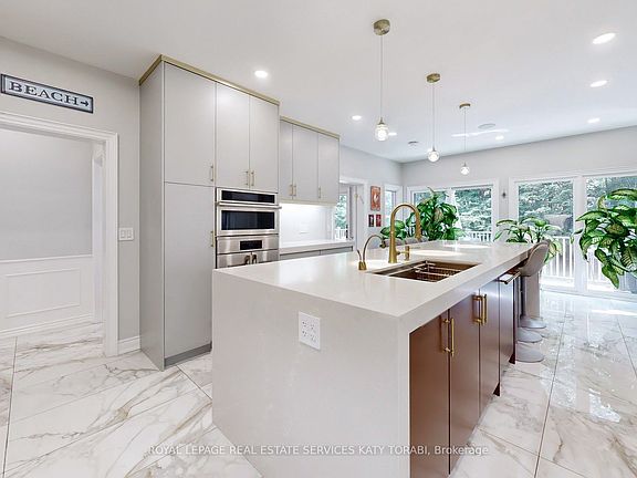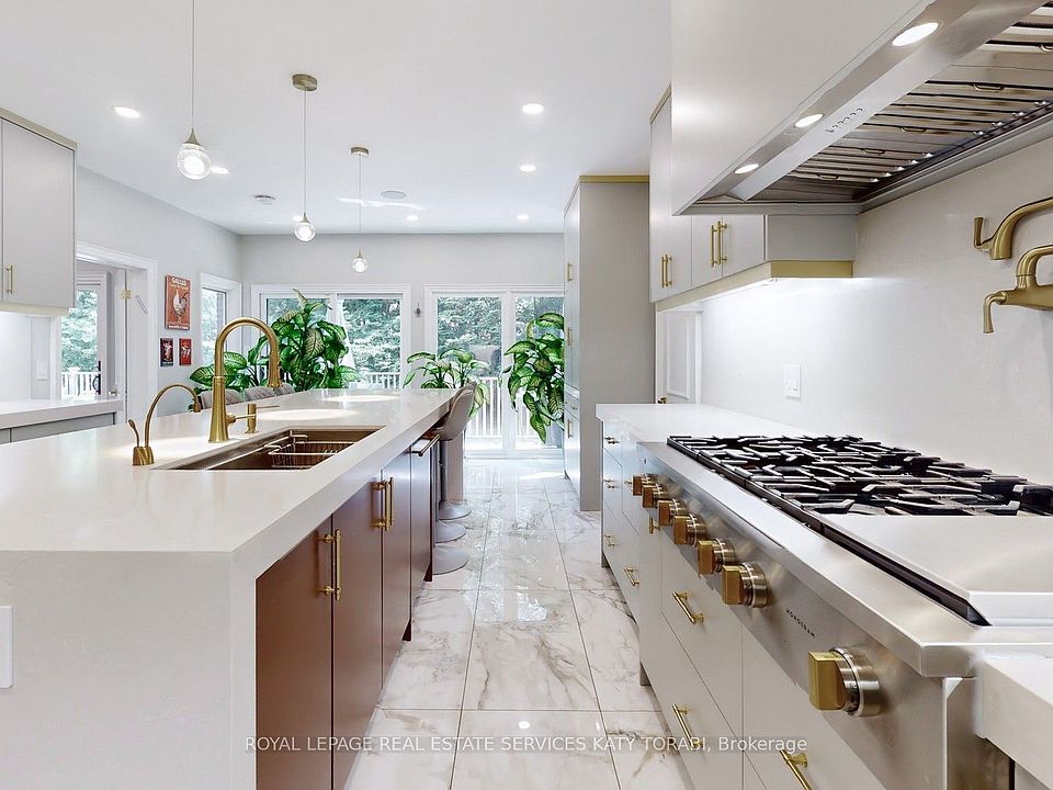 Exceptional Red-brick Georgian Estate In A Prestigious Neighbourhood. Welcome To This Timeless Luxury Residence Offering Approximately 6,260 Sq Ft Of Refined Living Space, Nestled On An Expansive 100 By 133.66 Ft Lot With Mature Trees And A Gated Front Garden. Step Inside To A Grand Two-storey Foyer Featuring Polished Marble Floors, A Showstopping Chandelier, And An Elegant Curved Staircase. Rich Hardwood Floors And Custom Millwork Flow Seamlessly Throughout The Main And Upper Levels. The Chefs Kitchen Is Outfitted With High-end Appliances, Sleek Cabinetry, Quartz Counters, Brass Hardware, And An Oversized Island Perfect For Entertaining. Multiple Walk-outs Extend To A Spacious Outdoor Deck With Distinct Lounge And Dining Areas, Ideal For Hosting Or Relaxing In Privacy. This Home Boasts Generously Sized Bedrooms With Custom Closets And Sun-filled Windows. Spa-inspired Bathrooms Feature Heated Floors, Double Vanities, Luxurious Tilework, Custom Cabinetry, And Designer Gold Fixtures. The Fully Finished Basement Redefines Lifestyle Living featuring A Billiards Area, Home Gym With Mirrored Walls, Yoga And Meditation Room, A Stunning Glass-enclosed Wine Display, Full Bathroom With Walk-in Shower, And A Stylish Bar With Built-in Cabinetry. Two Separate Laundry Roomsone On The Upper Level And One In The Basement offer Added Functionality. The Private Backyard Is Surrounded By Lush Landscaping And Includes A Large Deck With BBQ Hook up, Multiple Sitting Zones, And Walk-outs To Upper Balconies Overlooking The Treed Grounds. Ideally Located Near Top-ranked Schools, Scenic Parks, And Upscale Amenities, This Exquisite Property Blends Elegant Design, Modern Comfort, And Resort-like Livingoffering A Rare Opportunity In One Of The City's Most Desirable Neighbourhoods.