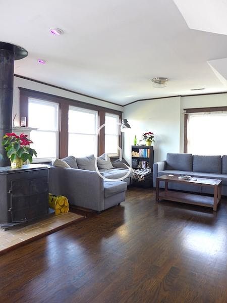 Three large bedrooms w/ closet space Two full recently remodeled bathrooms Duplex unit with great lighting Contemporary kitchen w/ beautiful white cabinets Stainless steel appliances Gas Stove and dishwasher Hardwood floors Beautiful fieldstone fireplace Huge top floor living room Private top floor porch w/ amazing city views Additional side deck Laundry in the building Prime Fort Hill location Easy access to the Orange Line