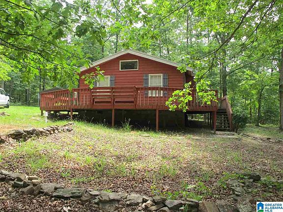 This is a great cozy lake cabin that offers 2 bedrooms and 1 full bathroom. The family room has a vaulted ceiling with an open floor plan. There is a large wrap around deck with the views of Alabama nature. This home is located near the community boat ramp and the new marina. Home has a new metal roof, carpet, vinyl flooring, inside paint, new well pump, carpet. Great deal for the money at the lake. Home is sold "AS IS".