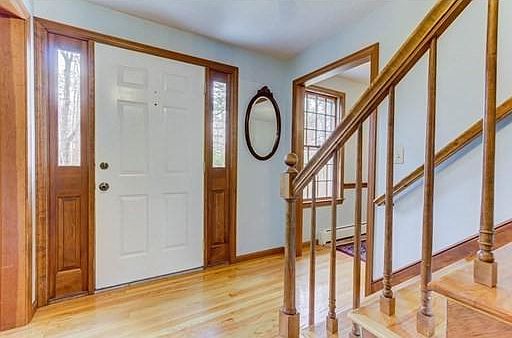 Rare opportunity to live in this wonderful Medway neighborhood. Great commuter location close to rt 495. Warm & inviting, this impeccably maintained home sits on an acre and half lot. Colonial style 4 bedroom, 2.5 bathroom home offers a spacious front to back, beamed family room, with fireplace. Large eat in kitchen with slider onto the serene screened in porch that opens up to the private deck - ideal for indoor/outdoor entertaining. Formal dining room and cozy living room finish off the first floor. Second floor offers a Master Bedroom with walk in closet and full bath. Three additional bedrooms and another full bath complete this level, all newer carpet throughout. A finished game or playroom that could be a nice opportunity for a media room or office area with plenty of storage in the basement. Recently painted exterior (2020). Ample storage space, including a walk in pantry. Convenient first floor laundry.