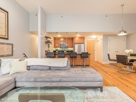 LIVE SHOWINGS AVAILABLE Pemmark, 2 Bed, 2 Bath duplex condo. 1 of 2 homes in the building w/ a private entrance. This front facing home has 12' ceilings, two 9' arched windows, wide plank oak floors sawn from old barn beams, recessed lighting & central air. The kitchen has black granite counters, cherry cabinets, stainless steel Jenn-Air appliances & pendant lights over the breakfast bar. Also, a glass tile backsplash & additional pantry storage. Downstairs the master bedroom suite has recessed lighting & marble bath w walk in shower. The 2nd bed & recently updated guest bathroom are also on the lower level. The washer/dryer is outside of both bedrooms. Additional storage under the stairs. 2 deeded garage spaces are in one tandem lane. The Penmark is a full service building with concierge services for package delivery, 24/7 security, pet wash room, common courtyard, updated gym w Peleton. 1 million spent on common area upgrades. Close to Bar Lyon, Boston Chops, Flour, Stella.