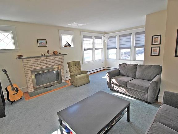 Charming 4 Bedroom Bungalow located on quiet Newport side street. The front Entry has a large coat closet and invites you into the spacious, light filled living room w/ hardwood flooring and wood burning fireplace. The living room is open to the dining room providing nice flow for entertaining. The kitchen has space for a table or island for casual dining. There is a back staircase to a mud room which leads both to the basement and also the deck and backyard. There are three bedrooms on the 1st floor providing options for an office and other purposes. A full bathroom with tub/shower with tile surround completes the first floor. The Master Bedroom on the 2nd floor has 4 skylights, exposed brick and built-ins and large closet. The basement has a room for man cave or playroom, a laundry room, storage space and a half bath. The exterior has vinyl siding and replacement windows for low maintenance. Off street parking for two cars. There are public tennis courts just up the street along with nearby parks. The convenient location is close to shopping, beach, downtown Newport and also has easy access to bridge and base.