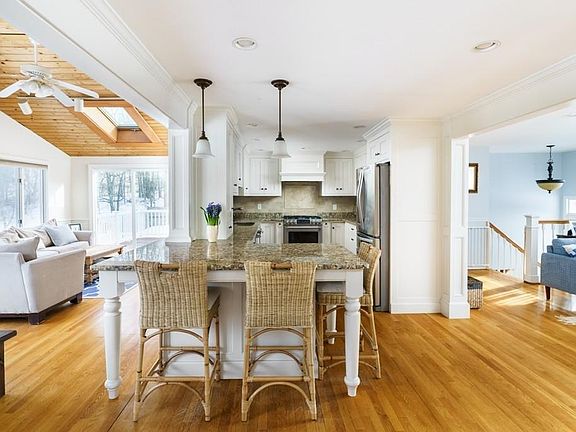 Beautifully updated, expansive, 4 bed/2.5 bath home in a prime Hingham location! Situated on a large, level lot on the corner of French St & Cranberry Lane- a lovely cul de sac neighborhood. This home has a fabulous open layout, filled with over-sized windows that allow light to pour into every room! Upon entering, you are greeted by a beautiful living room w/ fireplace. Pass through to the gorgeous Fanueil Kitchen with breakfast bar that opens into the family room with a vaulted ceiling, and sliders out to the deck...great for indoor/outdoor entertaining! Off the kitchen is an office area with extensive custom built-ins. Also on the main level is a lovely master suite w/ a large bathroom & 3 closets; plus 3 additional bedrooms and a 2nd full bath. Step down to the lower level, to find an additional family/playroom, 1/2 bath with laundry, second office area, and mud area w/ built-ins off the 2-car garage. Large fenced in backyard, and less than a mile to PRS and commuter train!