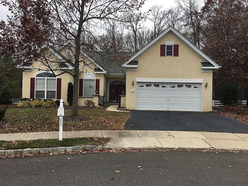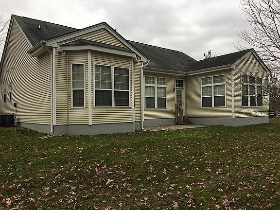 The perfect setting at the top of a cul-de-sac and backing to the woods. Through the effect of a court yard and through the double front doors brings you into this wide entry foyer. Off the foyer is the library/den/3rd bedroom. This room features a closet and custom built in shelving and desk. Continuing through the inviting pillars and 1/2 wall to the great room which features a gas fireplace with marble surround, custom built mantle, shelving and television cabinet. So much natural lighting comes through the 7 windows in the dining room. The kitchen offers a breakfast bar with ample space for several stools. All the appliances are included. The Master bedroom is off to one side with bay windows overlooking the wooded back yard with a walk-in closet and a 2nd closet with mirrored doors. A double vanity/sinks, whirlpool soaking tub with jets and a separate stall shower in the master bathroom with ceramic tile flooring. Both the Master Bedroom and Bedroom 2 are situated on different sides of the home each with its own foyer area. Through the laundry room is the 2 car attached garage. There is a full staircase leading to a wonderful storage space (unfinished). The backyard boasts a paver patio overlooking the woods. Don't miss out on this lovely home. This is an active adult community with a lovely clubhouse, indoor/outdoor swimming, pools and so many wonderful amenities.