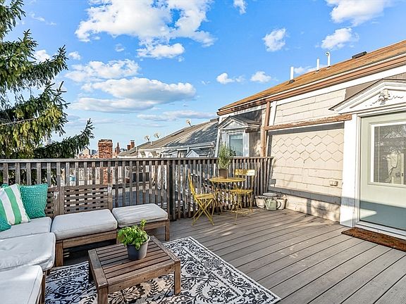 Sun OH Caxed.Charming 2-bed, 1-bath condo in the heart of South Boston! This Penthouse unit offers something unique: character, architectural charm with updated HVAC, renovated Bathroom, Private Roof-Top deck, and amazing views from a Walk-up Cupola. 743 sq ft of chic and style: with hardwood floors throughout. Updated kitchen features stainless steel appliances, wine fridge, and seating around a peninsula. The stylishly renovated bathroom features marble sink, subway tiles and hosting convenient in-unit laundry. Enjoy a private deck perfect for relaxing or entertaining with direct views, the walk-up Cupola wows with spectacular Boston skyline views and can be an office or ... a trendy bar. Located in a well-maintained three-unit building, this home sit on top of Telegraph Hill, and is close to Broadway nightlife dining while feeling residential and quiet, steps to the Telegraph Hill Park! Pet friendly, budget friendly, style forward, and ready for it's next owner. Come to take a look!