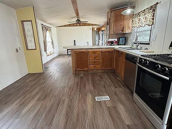 Welcome Home! This 2 bedroom, 1.5 bath mobile home is located in the highly desirable quaint community Barker's Village. The open floor plan creates a bright and welcoming living space, seamlessly connecting the kitchen, dining, and living areas for both comfort and functionality. Large windows allow natural light to fill the space, enhancing the inviting atmosphere.
