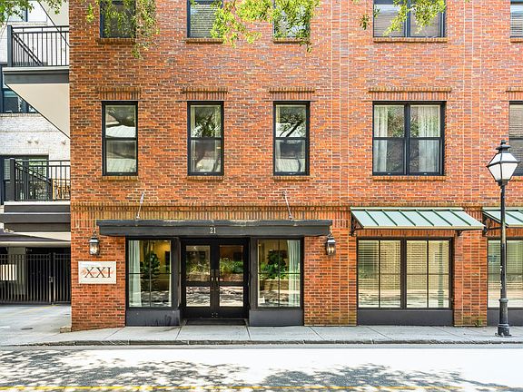 Recently renovated in 2019, this condo is perfectly located just one block from King Street - where shopping, restaurants, and entertainment are right at your fingertips! 21 George Street radiates with sophisticated elegance and features stylish finishes. Step inside to be greeted with beautiful Brazilian cherry hardwood floors and an abundance of natural light that flows throughout. This spacious open-concept unit features a large living and dining area surrounded by large windows and a glass door that leads to the spacious private balcony, the perfect place to relax with a morning cup of coffee. The gourmet kitchen has been updated and is larger than other units, featuring Whirlpool stainless-steel appliances, full bar seating for five, marble countertops, custom cabinets, a large farmhouse sink, a drawer microwave and a walk-in pantry. Enjoy the spacious primary bedroom with a private bathroom that showcases custom cabinets, a dual sink, deep soaking tub, and a walk-in closet with extra storage space. The guest room could also be used as an office or bonus room and offers its own bathroom with a walk-in shower, beautiful marble floors and granite countertops. Additional recent updates include a new exterior, all-new windows and a completely rebuilt patio. Enjoy a roof top deck that provides breathtaking views of the city and can be enjoyed year-round. You'll love the convenience of ample storage space, ready to use cable wiring in each room, garage parking with two parking spots that offer electric car chargers, designated bicycle parking and a gym that is included with neighborhood amenities. Come see all that 21 George Street has to offer!