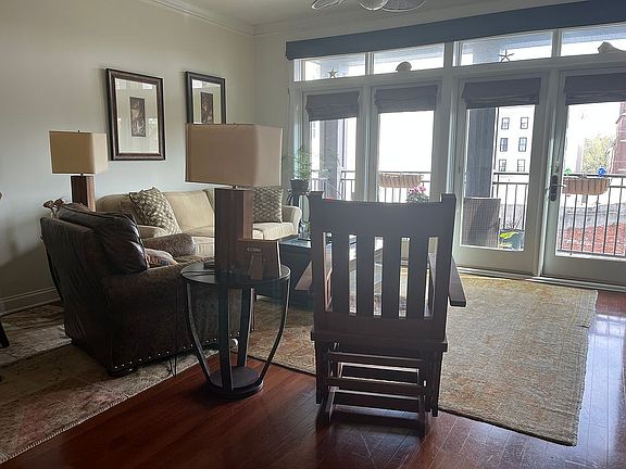Two bedroom condo with two bathrooms. Master bathroom has double sinks with large separate bathtub and walk in shower. Master also has walk-in closet. Kitchen has bar seating for three, full size refrigerator, dishwasher and pantry. Workout facility. Washer/dryer in unit. Garage parking. Secure building. Located one block from King Street and directly across from the College of Charleston basketball arena. rooftop terrace. Balcony. Available April 10th. Non smoking unit. Tenant is responsible for electric. Owner pays for water. One year lease agreement. First months rent plus deposit is due at signing.