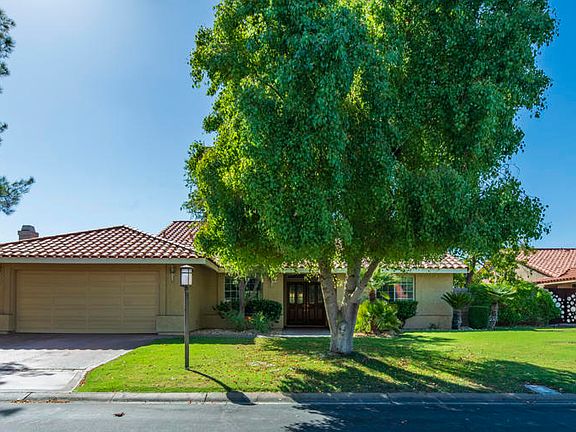 Beautiful South-western mountain views with a large yard and pool, perfect for desert entertaining. This home boasts lots of natural light, 2-fireplaces, 4-skylights, cathedral ceilings and a great floor plan which has the main bedroom on one side of the house and guest rooms on the other. Located in the prestigious Tamarisk area, home is part of a gated community of 22 homes with a low HOA of $150 monthly.