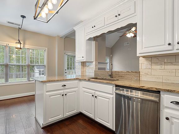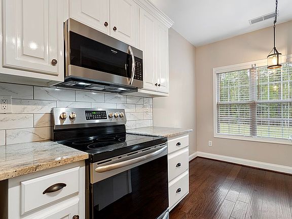 - Kitchen Features: Breakfast Bar, Eat-in Kitchen, Pantry, View to Family Room, Stone Counters, Cabinets White