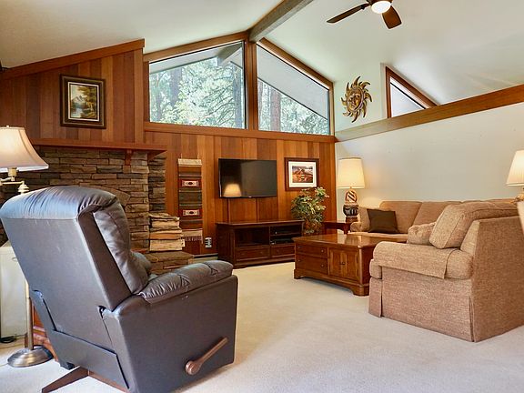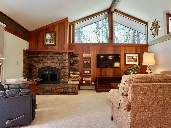 ROOM FOR THE BIG CHIEF... AND LOTS OF 'LIL INDIANS! This Alpine condo in Graeagle Meadows is not over stated... BUT Upgraded! Beautiful functioning wood burning Extrordinaire fireplace and new Mantel & Ledge Stone rock surround. Kitchen has newer cabinets and Corian counter tops. Two bedroom, two bath ALPINE unit affords sleeping for two couples or the whole family! Both Bathrooms enjoy newer cabinetry vanities and Solid Surface Counter tops. Graeagle Meadows is a premiere neighborhood with tall pines, lush green natural landscaping, privacy and HOA that pays strict attention to detail! All original natural redwood paneling and trim throughout. Kitchen is open to the Great Room and Ledge Stone fireplace. Many large windows to let in the forest and natural light. Completely fenced and enclosed rear patio - safe for the dogs and the children! Owner added many plants and detail to the rear yard as well as the front entry! This home also enjoys heat provided by the Toyo stove for those chilly winters! This unit is sold with remaining furnishings for your stay next stay and comfort. BONUS ....This Unit would also produce good income thru a vacation rental program!