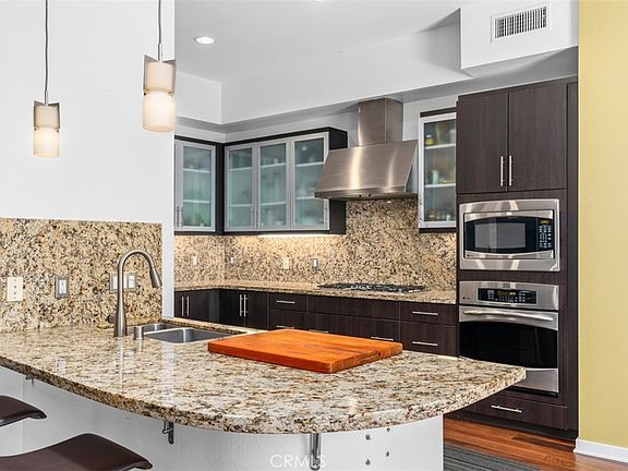 'The Belvedere' sophisticated flat residence C-1 A penthouse end unit with hills view and steps to the Clubhouse, featuring approximately 1,647 square feet of living space, spacious one bedroom plus large den / living room ( easily converted to a second bedroom ), two full bathrooms, one deck and two car underground parking with private storage. Home includes European cabinetry and stylish slab granite-counter tops with full back splash, stainless steel GE appliances in kitchen, custom blinds, drapes and beautiful hardwood floor throughout. Spacious master bedroom with newer designer carpet, built-in closets, Art De Co tile flooring in master bathroom with custom wallpaper. Upgraded tile and designer paint on second bathroom, custom fixtures, recessed lights, newly painted throughout and 10 feet high ceilings. This is a second home that barely been lived in. The 8,000 square-foot clubhouse / recreation center provides you with a bounty of amenities such as two Jr. Olympic saline pool, three outdoor Jacuzzi / spas, barbecue pavilion, state-of-the-art health fitness center, one outdoor half-basketball court and one pickle ball court. Live in Orange County’s newest, resort-style & recreational Oasis master planned community…The Central Park West.