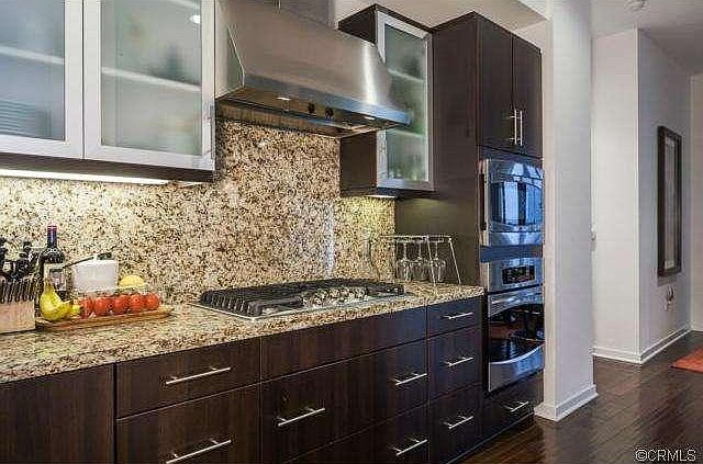 The Belvedere' Sophisticated Flat Residence 2 ( C1-X ) penthouse located on the fourth floor with open views and steps to the Clubhouse, featuring approximately 1,635 square feet of living space, two bedrooms, two bathrooms, 2 car underground parking with private storage. Home includes European cabinetry and stylish slab granite-counter tops in kitchen and bathrooms, stainless steel GE appliances with slab granite-counter tops with full back splash in kitchen, custom blinds, custom hardwood floor throughout, custom tile flooring in bathrooms, recessed lights and 10 feet high ceilings. The 8,000 square-foot Clubhouse /Recreation Center provides you with a bounty of amenities such as a Jr. Olympic saline pool, two outdoor Jacuzzi / Spas, barbecue pavilion, state-of-the-art health & fitness center, outdoor half-court basketball and much more. Live in Orange County's newest, resort-style & recreational Oasis master planned community...The Central Park West.