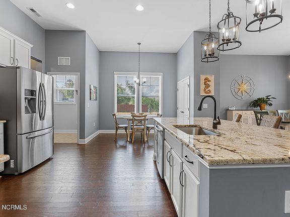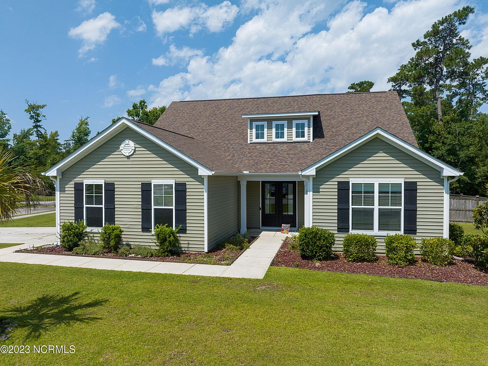 Incredibly beautiful home sitting high on a corner lot in Majestic Oaks! This home has tons of upgrades. The kitchen boasts a huge granite island, 42" cabinets, stainless steel appliances, spacious layout for room to prepare food without bumping elbows! The open floor plan flows from the kitchen to the large formal dining room, and into the living room allowing for a perfect place to entertain friends/family. High ceilings and crown moulding make this already spacious house seem even larger. Ifthat is not enough, there is a huge screened-in porch to enjoy the perfect coastal weather! And as an added bonus the sellers have installed a built in kitchen in the backyard underneath the pergola for added shade. When dinner is finished up, come back outside and relax around the fire pit and enjoy the cool evenings!Three of the bedrooms are located on the first floor, including the master bedroom. Boasting lots of space, a trey ceiling, and a large walk-in closet. The master bath has a t