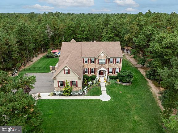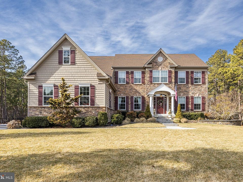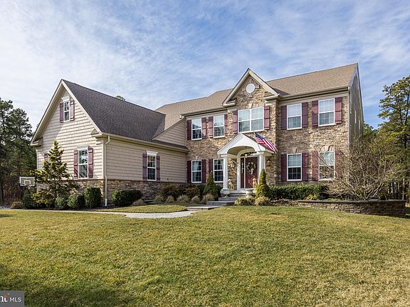 Welcome to this gorgeous estate property in the desirable Sanctuary community in Marlton sitting on over 1.6 acres! This home was built in 2017 and has been upgraded throughout! As you enter the home you are greeted by a grand foyer with custom millwork and hardwood flooring. Just off of the foyer is the study which can also be used a formal living room offering recessed lights and upgraded carpeting. On the other side of the foyer is the formal dining room with hardwood floors and crown molding. The gourmet kitchen is spectacular with a butler’s pantry, granite counters, large center island, custom cabinetry, upgraded appliances (SubZero refrigerator, dual ovens), tile backsplash and an oversized breakfast/morning room with views of the private back yard oasis! The family room is just off of the kitchen and has cathedral ceilings, a floor to ceiling stone gas fireplace, recessed lights, hardwood floors and custom windows with retractable upper blinds! The 5th bedroom is on this floor and is next to a full bath customized with accessible features (bedroom also has accessible doorway)- this room could also be used as a study or playroom! There is also a first floor laundry room with hook ups for double washer/dryer and plenty of storage. There are dual staircases allowing for easy 2nd floor access too! Upstairs are four generously sized bedrooms including the primary suite with hardwood floors, tray ceiling, walk in closet with custom closet system and a new bathroom (updated in 2022) with oversized tile flooring, shiplap, his/hers sinks, freestanding clawfoot tub and walk in shower with jet system! The basement is a walk up to the back yard and is finished to include a large game/tv room, wine bar with wet sink and two other individual rooms (one used as bedroom and one as home gym) plus a full bathroom! The backyard offers an outdoor living experience that is hard to find! It was recently named in House & Home Magazine as Backyard of the Year! The owners have spent over $200k for inground pool, dual zone hot tub (can stay open in cold months), composite deck, paver patio and large pavilion with wood burning stone fireplace! All of this plus central vac/sweeping system, outside shed, 2 zone HVAC with UV air filtration and installed holiday light package! Make your appointment to see this great home today!