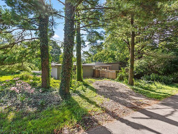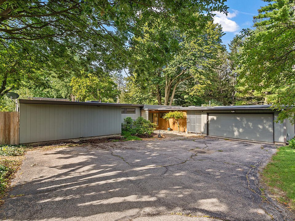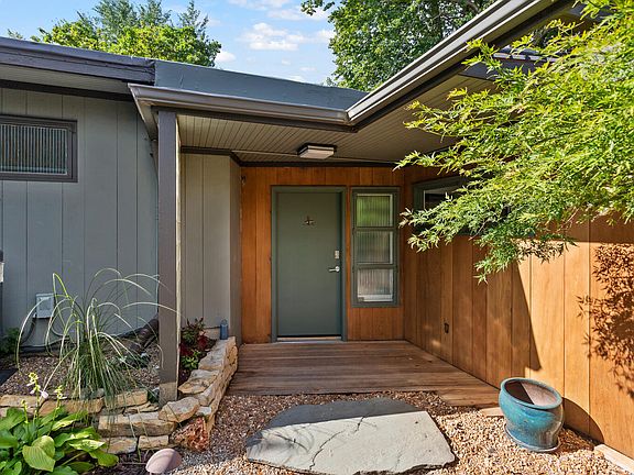 This mid-century modern-style home designed in the late 1940's by University of Illinois professor of architecture, JT Lendrum has maintained wonderful charm and character while experiencing recent updates. As you enter you are greeted by a spacious living room with glorious views of your expansive backyard that allows you to escape into nature. Back inside you will see that the flooring in the kitchen and living room was recently replaced as have the appliances in the kitchen. Just off of the living room is the hallway that brings you to the home office, three bedrooms, and bathrooms. Once you step outside you will have the option to head to the ADU that was built in the 1970's, featuring floating brick floors, built-in shelving, cedar walls, a kitchenette, and a full bathroom as well as a bedroom. If you decide to skip the ADU and stay outdoors, you will enjoy the oversized lot and its koi pond centerpiece. Other recent improvements include A/C on the main house in 2017 and a neww roof on both structures in 2023.