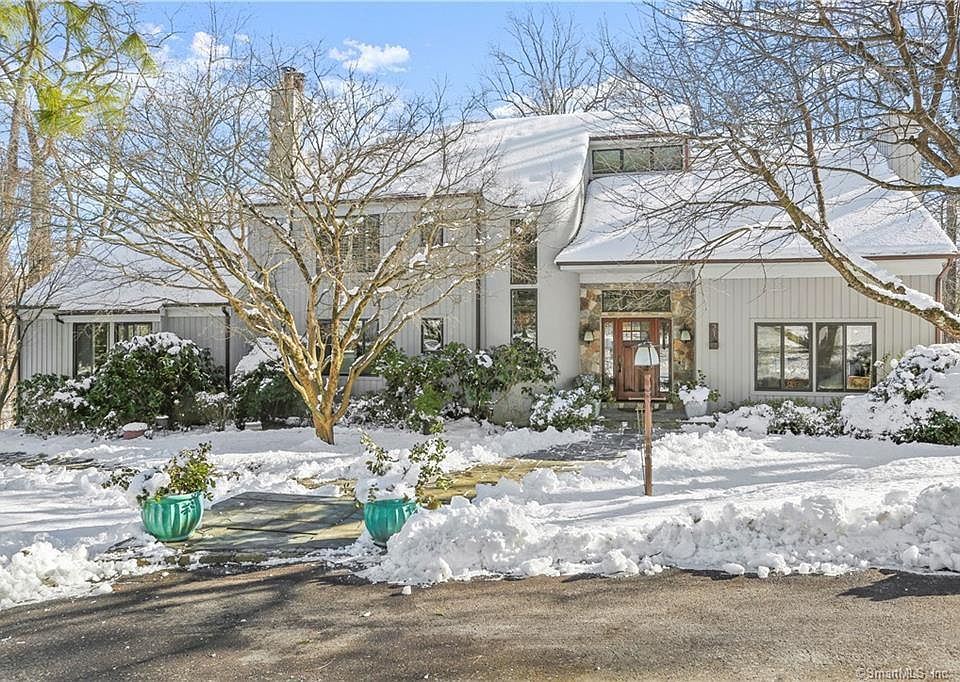 Colonial character & contemporary flair blend beautifully in this splendid 4BR/3.5B home that’s been expanded & transformed w designer style & amenities for how we live today! There are rich stained white oak flrs throughout, expansive glass fills it w natural light & brilliant open-plan gourmet kitchen, dining & family rooms offer dazzling space for living/entertaining. Kitchen boasts abundant custom cabinetry, Himalayan Quartzite counters & an impressive island. There’s a Shaw’s English farm sink w instant hot water, an array of Thermador high end applcs incl 2-wall ovens+6-burner gas range-top & slider to expansive wrap deck. Lg dining rm w wooded views & sliders to the deck is open to both the kitchen & dramatic family rm. Wood beams & cathedral ceiling make the family rm a showplace, while stone-wall fpl keeps it cozy & inviting. Den/office, also off the kitchen, could be a formal dining rm if you’d like & handsome LR w fpl adds charm. Upper level has 3-lg BRs, PLUS superb Primary suite. Lg Primary BR has a vltd ceiling, dressing rm size WI closet & perfect bathrm for unwinding w modern soaking tub, WI shower, dbl quartzite vanities & heated flr. Walkout Lower w bath is lg enough to be your play, media, nanny, workout space w sliders to a pvt retreat! Lg stone patio, w 7-person hot tub(firepit excl) views glorious back propty bordered by protected land. On a fine homes c-d-sac w city water, underground utilities+circular drive-it’s all here for today’s discerning buyer! Feature sheet detailing all the special features, inclusions & exclusions will soon be available.