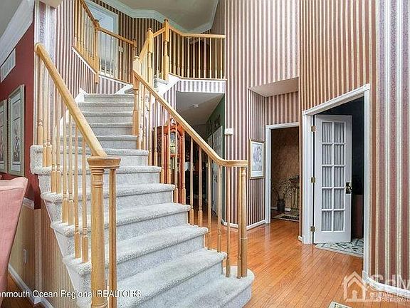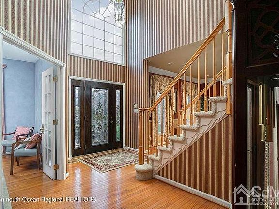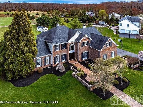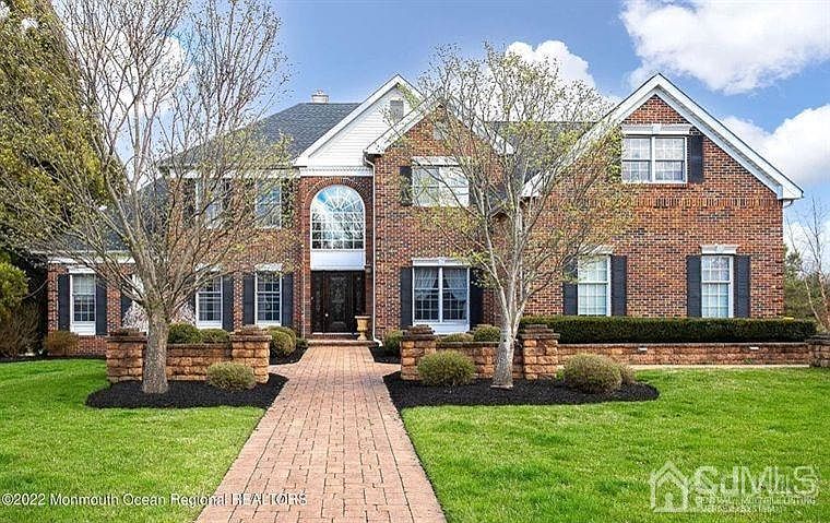 Move in ready, Quick settlement available. Built in 1998 this brick front Center Hall Colonial is in small sub-division of homes on a cul-de-sac in prestigious Chesterfield Township. This home is situated on 1.3 acres. A professionally landscaped yard, hardscape walkway will lead you to the front door of this beautiful home. The home offers over 4571 sq ft. of living space. As you enter, you will notice the soaring 2-story foyer with Palladium window and hardwood floors throughout the entire first floor. There are glass French doors that lead to a first-floor study. Large eat-in kitchen with a center island, upgraded cabinetry, and open to a Family room with vaulted ceilings and a floor to ceiling stone fireplace. An addition in 2014, includes a bright and airy morning room and a 26 x 15 entertainment/game room with vaulted ceilings, bar area and a floor to ceiling gas stone fireplace flanked with garden windows. Architectural columns divide the living room with the large formal dining room that has double crown molding, chair rail and custom drapes. From the living room, there are glass French doors that leads to a 27 x 13 Great room with cathedral ceilings, enhanced with a Palladian window and custom drapes. A powder room and laundry room complete the first floor. Front and back staircases lead to the second level, with 4 spacious bedrooms all with ceiling fans, and an updated hall bath. The amazing master bedroom suite offers coffered ceiling, closet plus a double closet, a large sitting room and an updated master bathroom with a Jacuzzi tub, double sink vanity, and an oversized shower stall with tile surround. The home has a full daylight walkout basement that could easily be finished for additional living space. 3 car garage, 2-New multi-zoned HVAC and heating system. Newer roof. The sliding doors from the morning room and the game room lead to a private backyard with a huge 2 level paver patio and amazing views of open space. This home is located approximately 15 minutes from Hamilton train station, and the Joint Base McGuire Dix Lakehurst. With excellent schools, and easy access to Route 206, 130, 295, and the New Jersey Turnpike. 2 level outdoor living space. The upper level is covered with a roof and has an eating area, lounging area and a cooking area with a natural gas hook up enclosed by paver walls and columns with low voltage custom lighting. The lower level is a great sun deck with an electric hook up for a hot tub. This is all backs up to preserved farmland. It provides a private quite oasis to enjoy all year long.