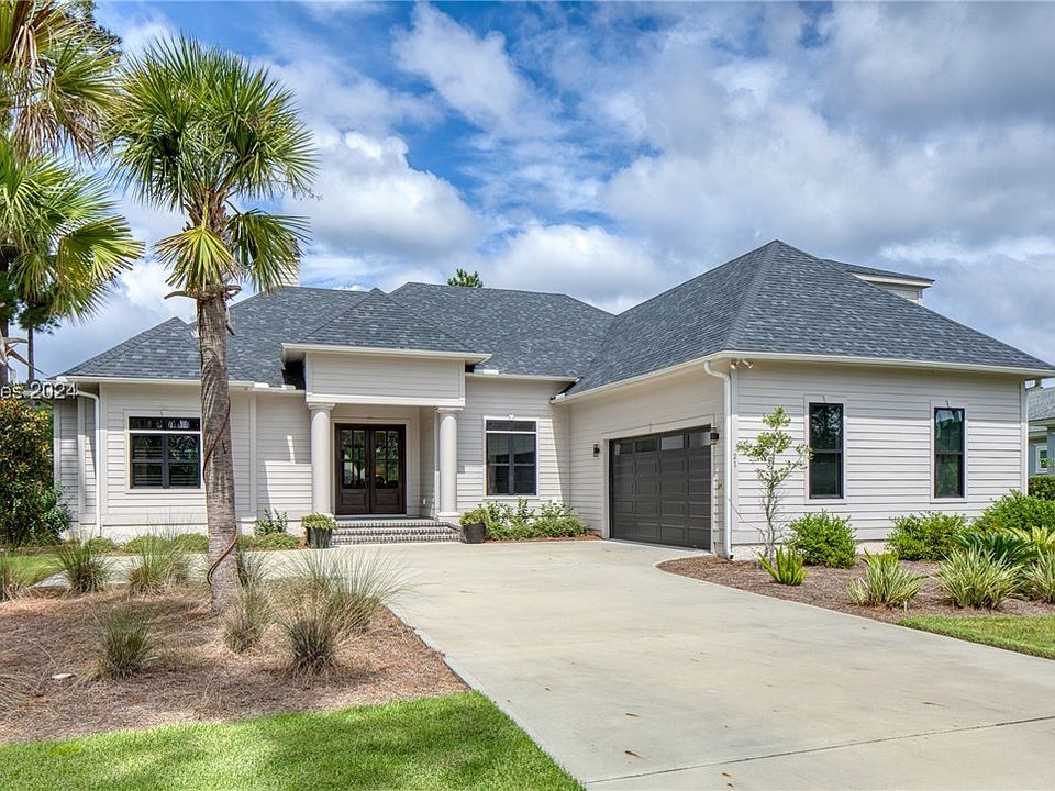 Located in the popular Hampton Hall neighborhood, this home feels brand new since it was a 2nd home & is two years new. Upon entering the beautiful estate, you quickly notice 2 (not 1, but 2) floor to ceiling sliding glass doors that open up to a large screened porch that overlooks the golf course & lagoon. Sited on a private street, the home has a little modern twist that includes stunning light fixtures, gorgeous wood floors, high ceilings, gourmet kitchen, wine cooler, high-end appliances & an outdoor grill that has never been used. The home was designed with storage in mind, so you can bring all of your treasures. Near historic Bluffton!