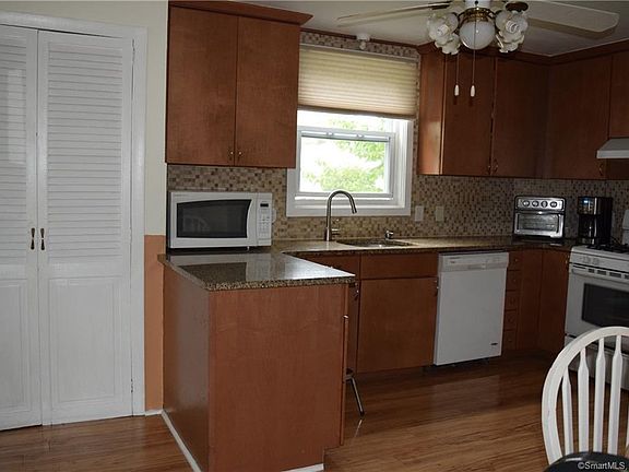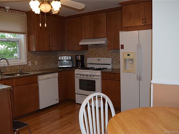 This well-kept home on a corner lot has been lovingly cared for by one owner for 50 years. Located on a quiet street yet conveniently located to the Rte 7 Connector, I95 and Merritt Parkway with an easy walk to Main Street restaurants and shops. Original oak hardwoods shine on the main floors open living and dining rooms. An enclosed sun porch adjoins the updated eat-in kitchen and newly installed full bath. The upper level offers a second full bath and three bedrooms, one with a charming nook that can be used as a fourth sleeping area, playroom, or home office. Ample storage in the full basement and walk-up attic. Recent upgrades include a new furnace/water heater/ The enclosed back yard and parking pad round off this must-see family home.